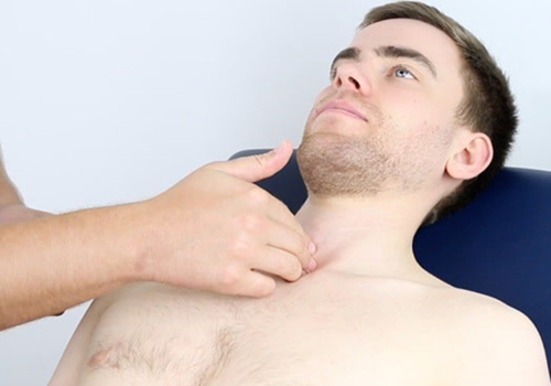 가장 쉬운 곳에서부터 촉진(palpation)해나갑니다.