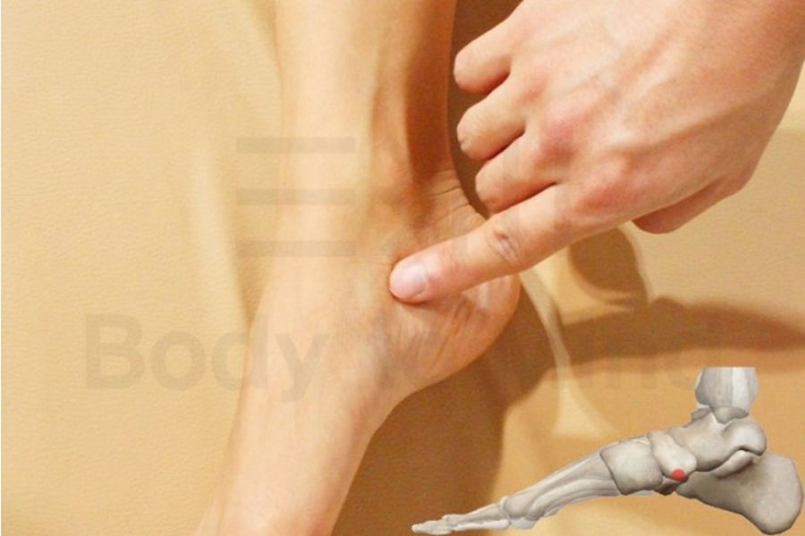 주상골(navicular)은 찾기 쉽습니다. 발(foot)의 내측(internal)에서 비교적 가운데 지점에 돌출되어 있습니다. 위의 사진을 통해서 정확한 지점을 확인할 수 있습니다.