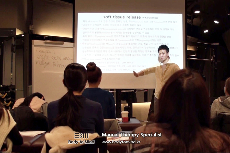 교육현장에서 매뉴얼테라피(manual therapy)전문가 과정을 통해 다양한 테라피(therapy)를 교육하고 있습니다. 그 종류만 대략적으로 헤아려봐도 열 종류가 훨씬 넘습니다. 그럼에도 생각보다 길지 않은 교육시간 동안 모든 다양한 매뉴얼테라피(manual therapy)를 지도할 수 있는 이유는, 다양한 매뉴얼테라피(manual therapy)를 통한 하나의 공통적인 근본 목적과 각각의 매뉴얼테라피(manual therapy)를 개별적으로 적절히 적용시킬 수 있게 하기 때문입니다. 이것은 아주 단순히 해소됩니다. 단 두 가지면 해결됩니다. 하나는 '몸'이고, 그리고 다른 하나는 각 기법의 '원리'입니다. 몸을 알기 위해서는 몸을 담고 있는 '해부학'을 이해하면 되고, 각 기법의 원리를 알기 위해서는 각 기법의 '원칙'을 이해하면 됩니다. 그러니 이미 몸을 알고 있다면, 몸을 알고 있는 상태에서는 어떠한 매뉴얼테라피(manual therapy)도 금세 익혀질 수 있습니다. 모든 매뉴얼테라피(manual therapy)는 몸이 있기에 만들어진 치유 기법(cure therapy)이기 때문입니다.