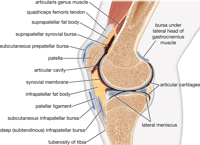 위의 그림은 윤활관절 구조(structure of synovial joint)의 기본 형태입니다. 여기에서부터 하나씩 살펴보면 됩니다.