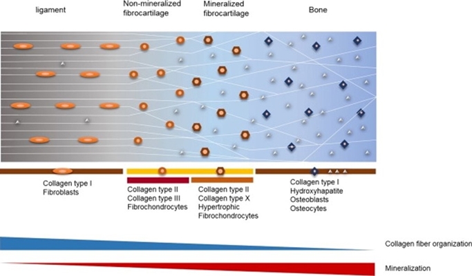 이것은 인대(ligament)가 단순히 뼈(bone)의 특정 부분에서만 연결(link)되어있는 것이 아닌, 뼈의 막(periosteum)까지 포함되어 연결되어있기 때문입니다. 그러니까 인대조직(ligament tissue)과 뼈조직(bone tissue)은, 두 지점이 결합하게 되는 장소(connection area)를 관찰해보자면, 두 성분 사이에서는 두 성분의 중간 성격을 지니게 되는 구조(strueture)와 위치(position)가 존재하며, 결과적으로 이곳 장소에서부터 조직의 막(tissue membrance)과 그 내부로도 이어져 있습니다. 따라서 단순히 인대(ligament)가 뼈(bone)에 연결(link)되어 있고 결합(connection)되어있다고 이야기하는 것보다는, 감싸고 있다는 이야기하는 것이 더 정확할 겁니다.