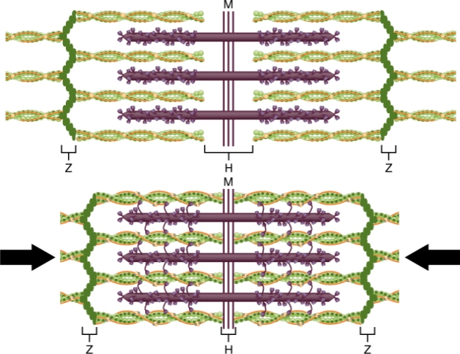 근육 근섬유(muscle fiber) 내에는 근절(sarcomere)이라고 하는 기능적 단위(functional unit)가 존재합니다. 이곳에는 수축 단백질(contraction protein)이라고도 불리는 액틴(actin)과 마이오신(myosin)이 존재합니다. 성분상 단백질(protein)로 구성되어있는 두 물질은, 물질 간 활주(sliding)가 발생하여 교차결합(cross coupling)이 일어납니다. 이때 에너지(energy)를 소비(consumption)하게 되며, 교차결합(cross coupling)의 결과로 서로 다른 수축단백질(contraction protein) 사이의 공간(gap)이 좁아져 근절(sarcomere)의 전체 길이(length)가 감소하게 됩니다. 이러한 과정이 단일한 근절(sarcomere)에서만 발생하는 것이 아닌, 인접 지점에서부터 포괄적인 지점까지 넓혀져 궁극적으로 근섬유(muscle fiber) 전체 길이(length)가 감소하게 되는 것입니다. 이것이 바로 근육(muscle)이 수축(contraction)하게 되는 기전(mechanism)이자 과정입니다.