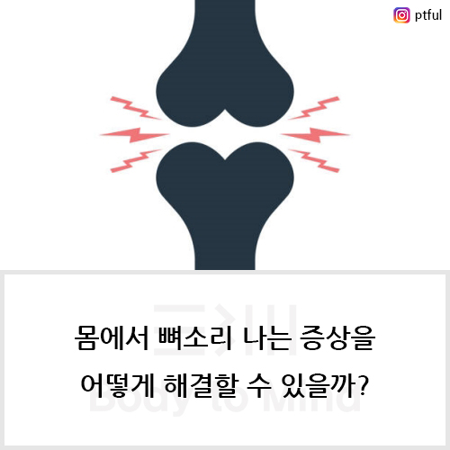 계속해서 몸에서 뼈소리(bone sound)가 나고 있다면, 그냥 두지마세요. 그것이 무엇으로 기인하는지도 확인해보고, 그리고 결과적으로 관절(joint)과 몸의 건강을 위해서 그에 따른 적절한 작업을 수행해야 할 것입니다.