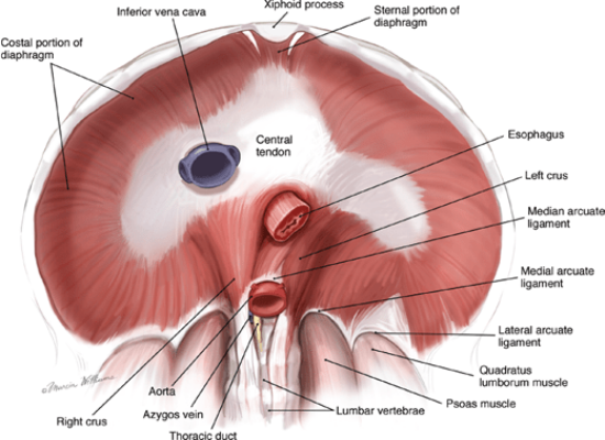 이로써 목내재근(deep neck muscle)과 횡격막(하부 섬유)(inferior fiber of diaphragm)은 경추(cervical)와 요추(lumbar)에 대해서 자세유지근(postural maintain muscle)이라고 할 수 있습니다. 전만(lordosis이 더 과해지지 않게 앞쪽 방향(anterior direction)에서 신전성 수축(extensibility contraction)을 발휘하고 있는 셈입니다. 혹은 전만(lordosis)이 더 과해지지 않는다 하더라도, 후면부(posterior)에 위치한 조직(tissue)들과 더불어 올바른 균형적인 짝힘(balance of couple force)을 이루기에 아주 효율적으로 최적화된 힘(force)의 균형(balance)을 이룰 수 있도록 하는 조직(tissue)인 셈입니다.