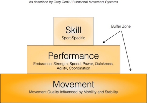 이와 더불어 관절 간 상대성 이론(joint by joint approach), 그리고 움직임피라미드 이론(movement pyramid theory) 등도 우리에겐 이미 익숙합니다. 관절 간 상대성 이론(joint by joint approach)은 인체 내에 위치하는 관절(joint)들이 서로 인접한 관계 내에 있을 때에는 서로 다른 안정성(stability) 및 가동성(mobility) 능력(ability)이 교차적으로 형성되고 발휘되어야 한다는 이론(theory)입니다. (물론 동시에 그 반대적인 관점으로 봤을 때, 특정 능력(ability)이 그만큼 떨어지는 만큼 그러하듯이) 움직임피라미드 이론(movement pyramid theory)은 정상적인 움직임(normal movement)을 발휘하기 위해 다양한 인체 능력(ability)들을 고려할 때, 다른 어떠한 능력(ability)보다도 안정성(stability) 및 가동성(mobility)이 선행되어야 한다는 이론입니다.
