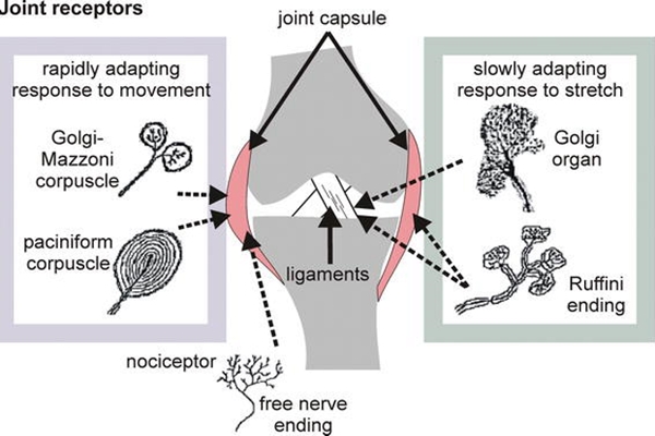 관절(joint)에서의 수용기(receptor)들이 느끼는 감각(sense)