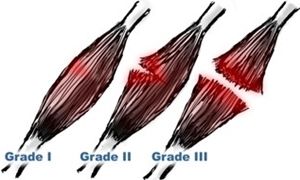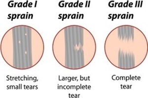 염좌(sprain) 및 좌상(strain)의 손상(injury) 정도에 따른 3단계