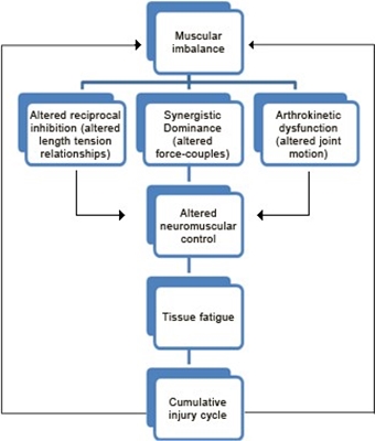 흔히 근육 불균형(muscle imbalance)하면 얀다(Janda)의 교차증후군(cross syndrome)을 떠올리기 쉽습니다. 얀다는 일부 근육들이 교차적으로 특정 규칙에 의거하여 긴장(tightness) 및 단축(shortening), 그리고 약화(weakness) 및 신장(lengthening)에 따른 근육 불균형(muscle imbalance)의 교차증후군(cross syndrome)을 정립하였습니다. 해당 이론은 오늘날까지 여러 분야에서 적용되고 있으며, 그 분야는 의학(medicine), 물리치료학(physical therapy), 운동학(kinematics) 등이 됩니다.