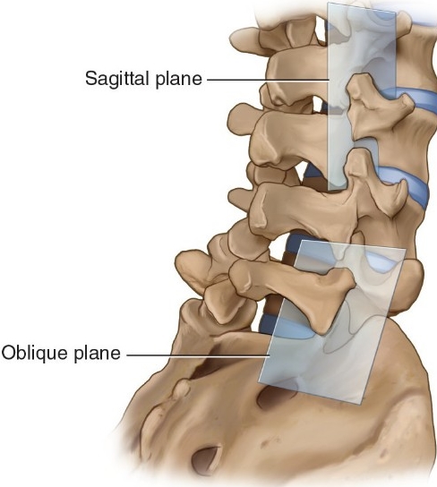 우리는 관절 움직임(joint movement)이 관절의 구조(joint structure)적인 특징에 의해서 결정된다는 것을 이미 잘 알고 있습니다. 척추(spine) 또한 예외되지 않습니다. 척추관절(spinal joint)이 가지는 구조(structure)에 따라서 척추운동(spinal movement)이 결정됩니다. 중요한 것은 앞서 언급한 두 가지의 관절(joint) 중에서 후관절(facet joint)이 척추운동방향(spinal movement direction)을 결정하게 됩니다. 척추 분절(spinal segment)에 따라서 후관절(facet joint)의 각도(angle)를 살펴보자면, 위치에 따라서 상이한 차이점을 가진다는 것을 알 수 있습니다. 이렇게 위치에 따라 관절의 면(joint surface)을 이루는 방향이 다르기 때문에 척추운동(spinal movement)은 후관절(facet joint)이 결정하게 됩니다.
