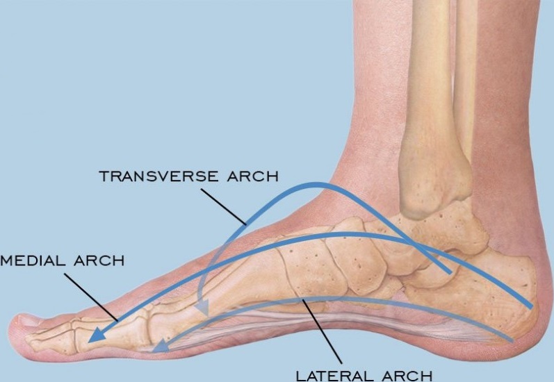위의 그림을 통해서 내측 종아치(medial arch)를 포함한 모든 세 가지 형태의 발아치(foot arch)를 확인할 수 있습니다.