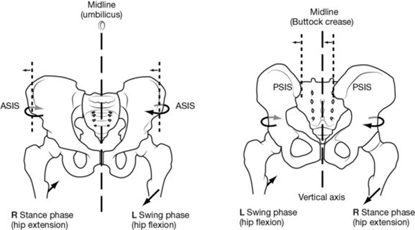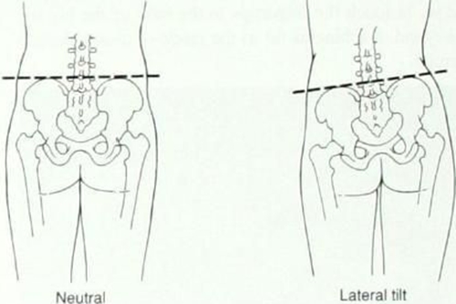 이러한 가쪽기울임 움직임(lateral tilt movement)은 올림(elevation) 또는 내림(depression)으로 표현하기도 합니다. 하지만 바깥쪽으로 기울어진 움직임이기 때문에, 골반(pelvis) 좌우가 서로 다른 방향으로 이동하는 움직이라고 기억하면 됩니다.