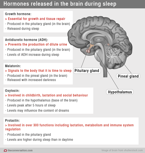 휴식(rest)은 몸의 회복이자 재구성이며 강화입니다. 이것은 몸이 움직이지 않을 때 가능한 일입니다. 시간대가 낮이라면 몸이 움직이는 상태, 반대로 밤이라면 몸이 움직이 않고 쉬는 상태입니다. 여기에서 휴식(rest)은 몸을 무조건 가만히 있는 것이 아니라 수면을 의미합니다. 우리가 잠을 자고 있는 동안 중추신경계에서는 몸의 재구성을 계속해서 발현하며, 부족한 부분은 보완하고 심지어 강화시키기까지 합니다. 특히나 수면 상태에서는 일부 호르몬들의 대사작용이 활발해집니다. 이런 호르몬들의 생성과 분비를 통해서 우리 인체는 자극(stimulation)된 신체를 반응(reaction)하게 하는 것입니다. 우리의 관심사는 동화 호르몬일 것입니다. 수면 시의 동화 호르몬은 성장호르몬, 성호르몬, 인슐린 등입니다. 호르몬이라는 것은 분비된다고 해서 무조건 즉각적인 효과가 나오지 않습니다. 호르몬이 분비되면, 분비된 호르몬은 혈액을 타고 이동하여 수용기가 있는 표적기관에 도착해야 됩니다. 통상적으로는 몇 시간에서 며칠이 소요될 수도 있습니다. 따라서 즉각적인 효과는 일어나지 않지만, 운동이라는 자극(stimulation)을 통해서 호르몬이 분비되기 때문에, 이것은 신체 발달에 대단히 중요한 요소라고 할 수 있습니다.